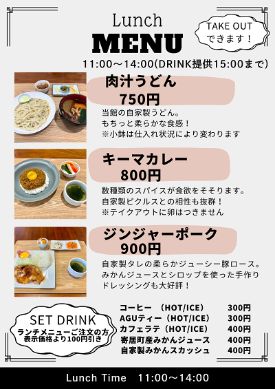 現在営業中の『アグカフェ』ですが、営業時間とランチメニューの変更がございます。